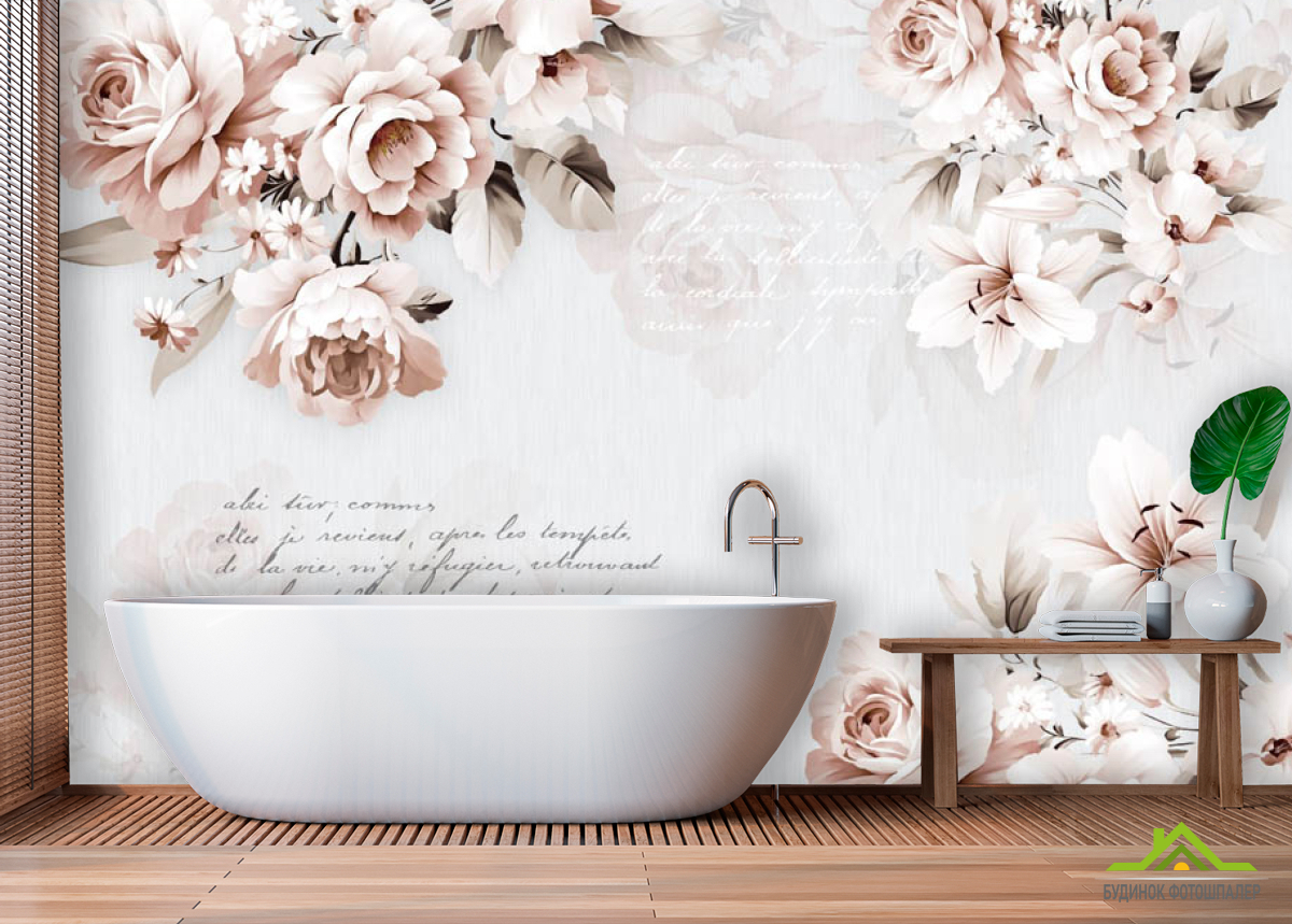 Фотообои Нежные цветы и текст Фотообои Нежные цветы и текст