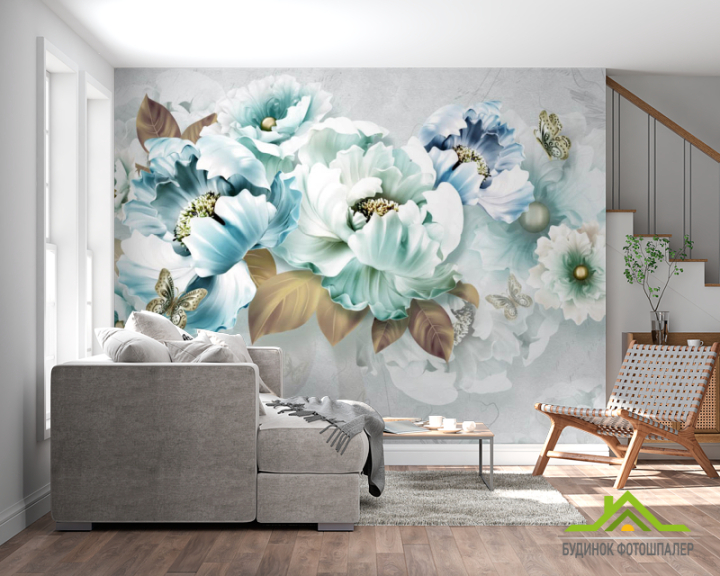 Фотообои Голубые 3д цветы Фотообои Голубые 3д цветы
