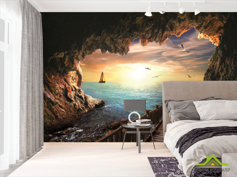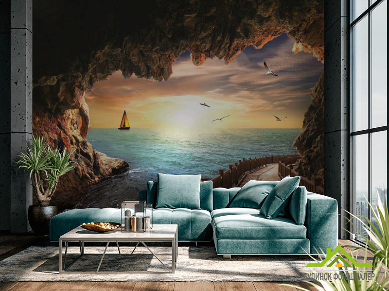 Фотообои Вид из пещеры на море