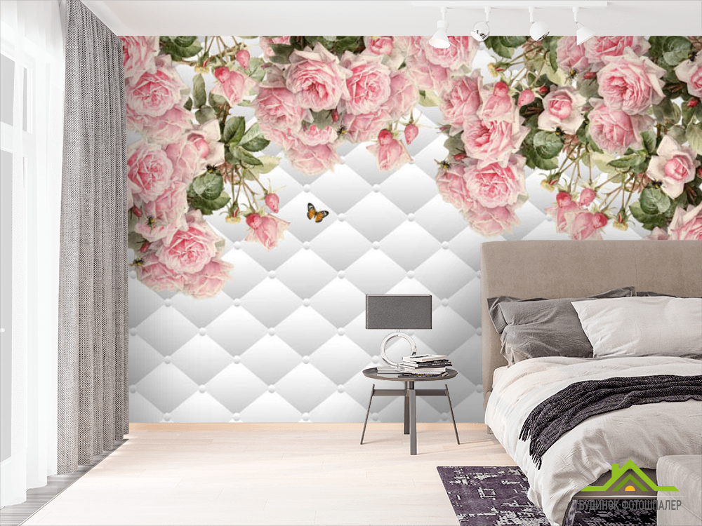 Фотообои розы и бабочка Фотообои розы и бабочка