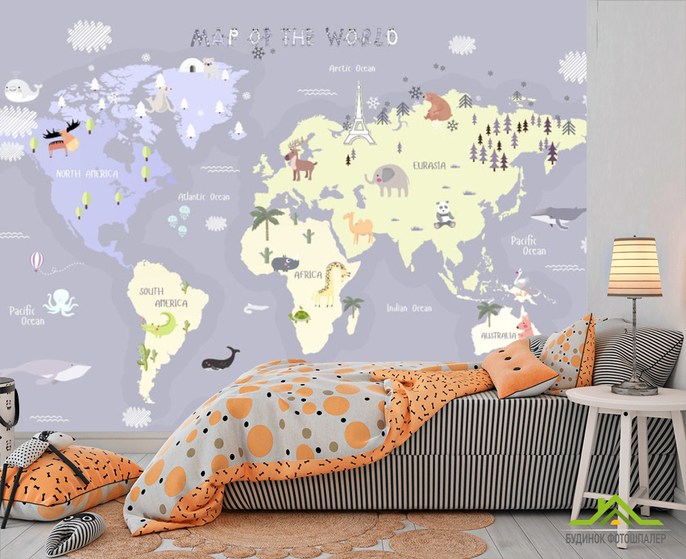 Фотообои Фиолетовая детская карта на английском Фотообои Фиолетовая детская карта на английском