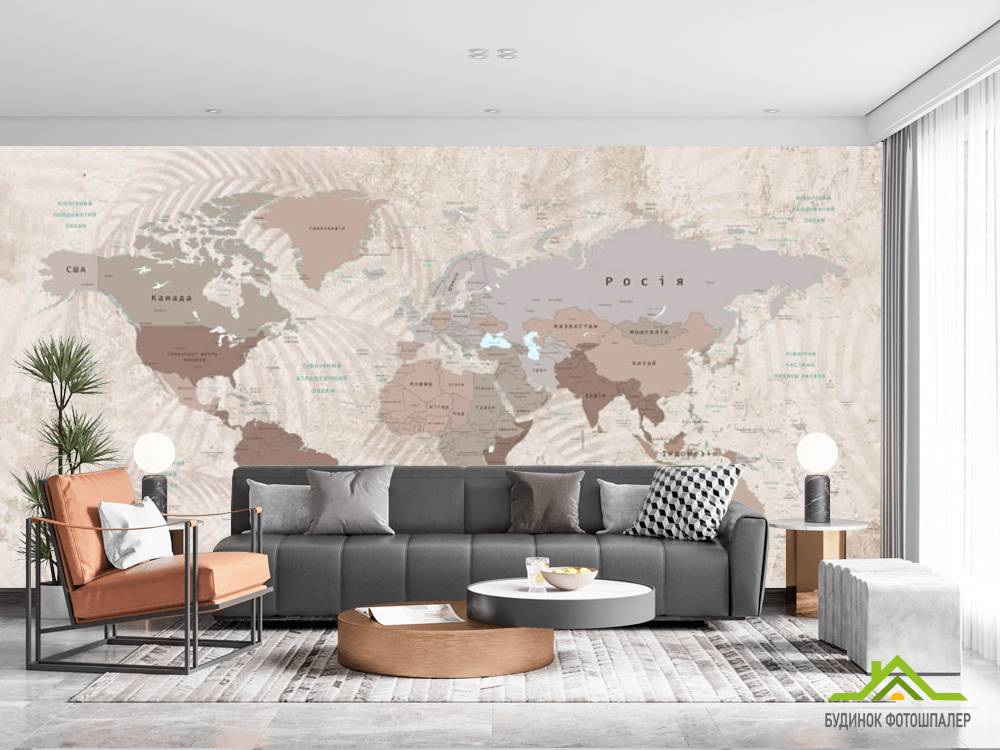 Фотообои Бежевая карта с ветками Фотообои Бежевая карта с ветками
