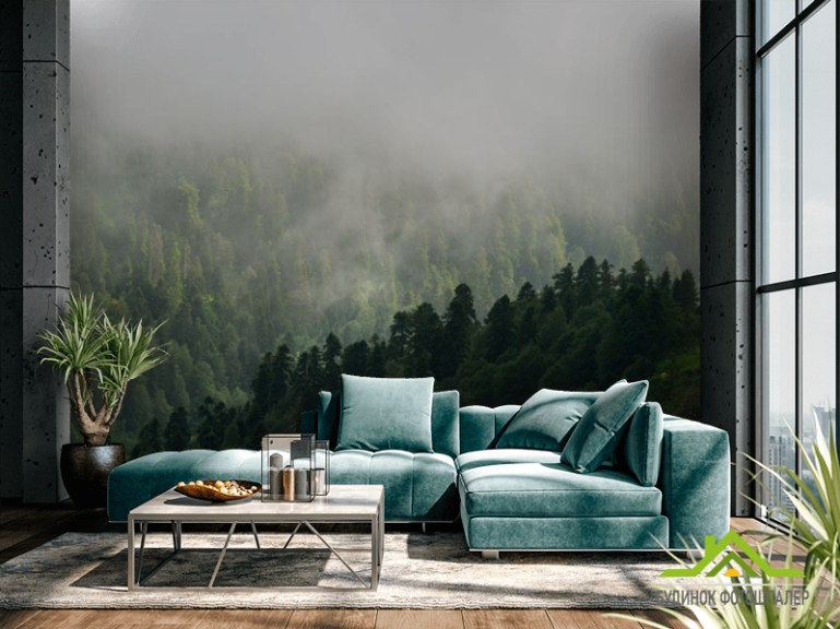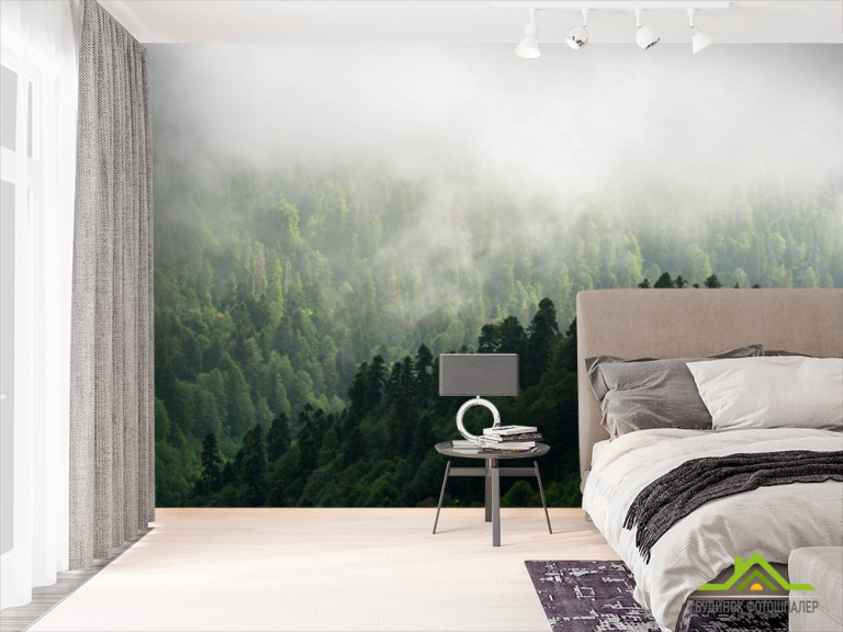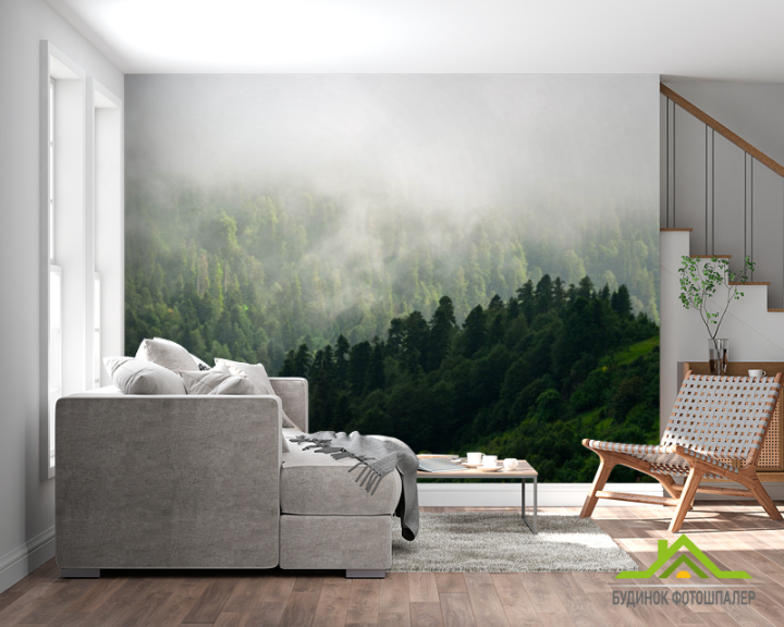 Фотообои Вид на туманый лес Фотообои Вид на туманый лес