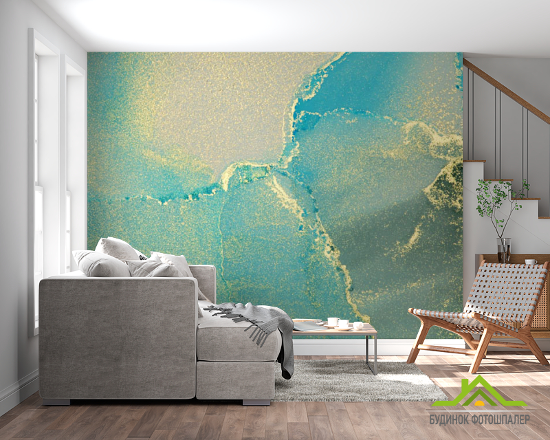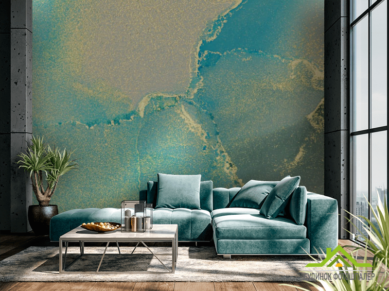 Фотообои Бирюзовый fluid art с золотом Фотообои Бирюзовый fluid art с золотом