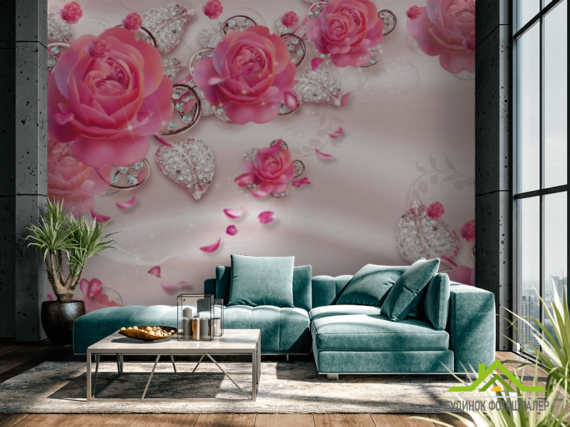 Фотообои 3d розовые цветы Фотообои 3d розовые цветы