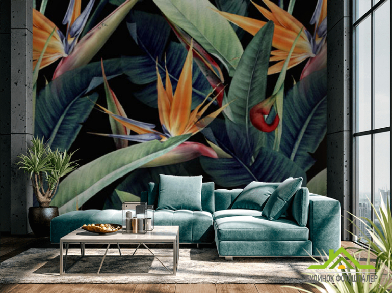 Фотообои Яркие тропические листья Фотообои Яркие тропические листья