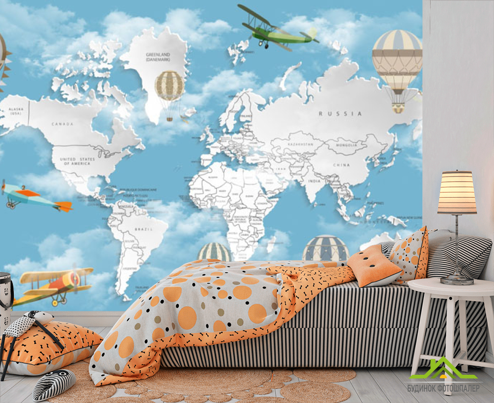 Фотообои Голубая карта с облаками на английском Фотообои Голубая карта с облаками на английском