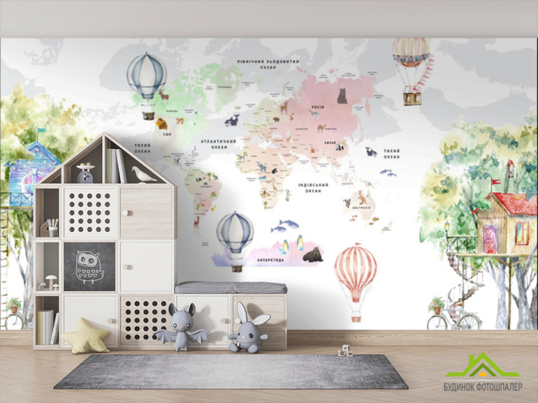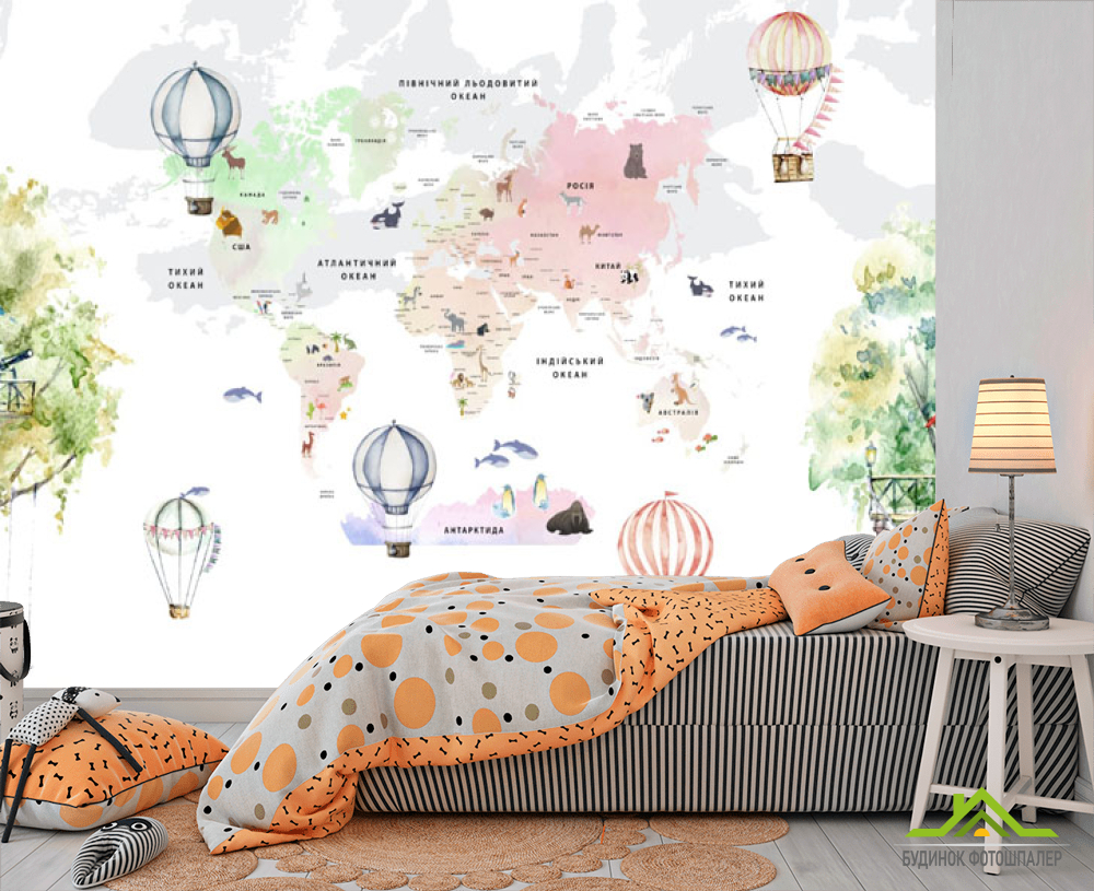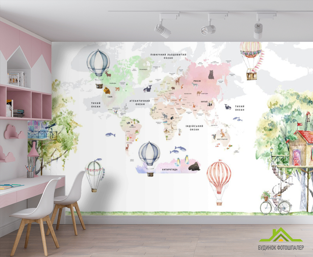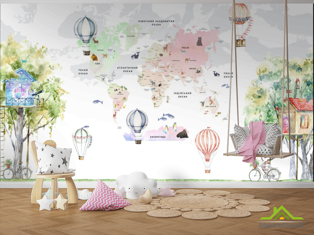 Фотообои Карта детская с шариками и домиками Фотообои Карта детская с шариками и домиками