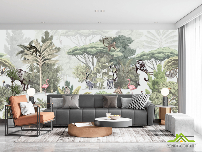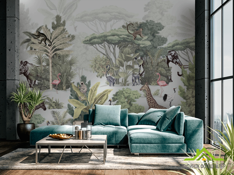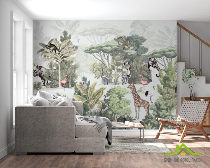 Фотообои тропические листья и животные Фотообои тропические листья и животные