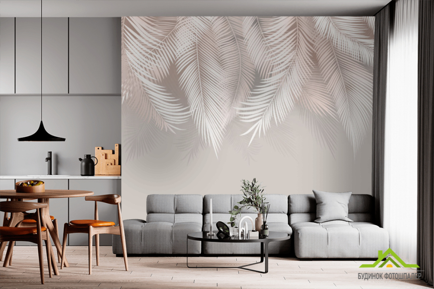Фотообои графические бежевые пальмовые листья Фотообои графические бежевые пальмовые листья