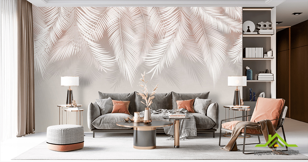 Фотообои графические бежевые пальмовые листья