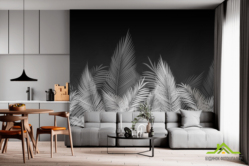 Фотообои Листья в серых оттенках Фотообои Листья в серых оттенках
