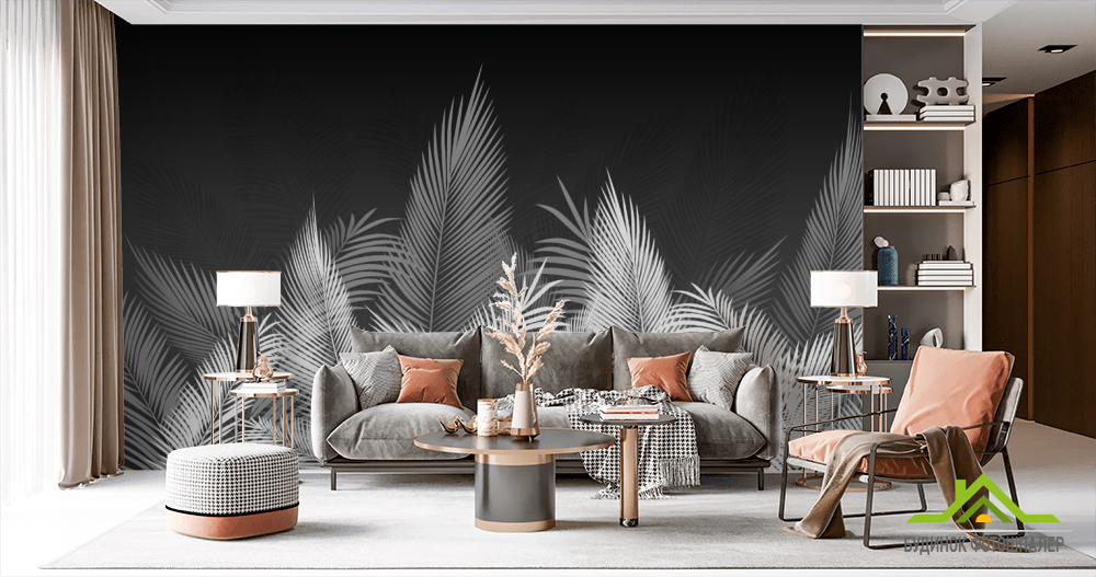 Фотообои Листья в серых оттенках
