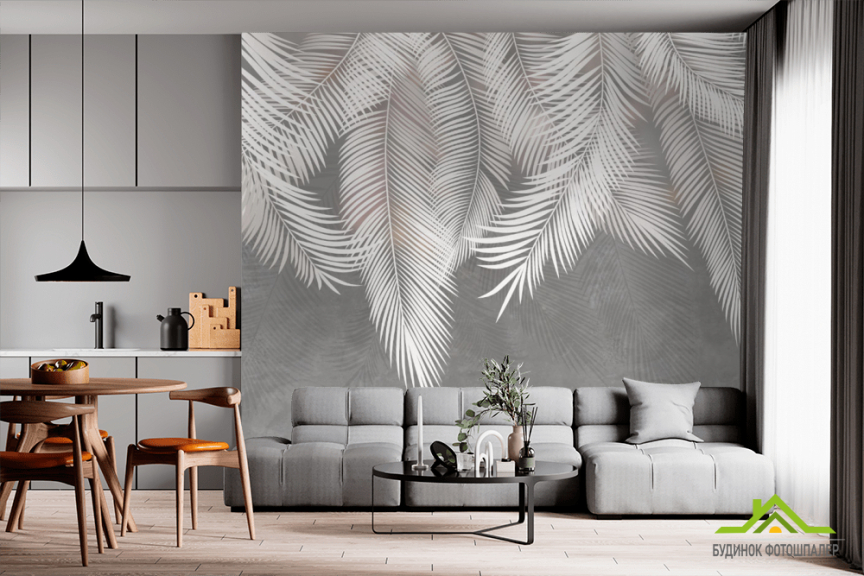 Фотообои серые листья на стену Фотообои серые листья на стену