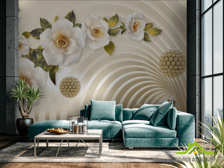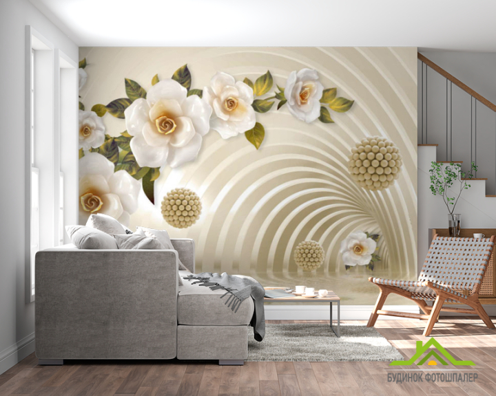 Фотообои 3д тонель с цветами