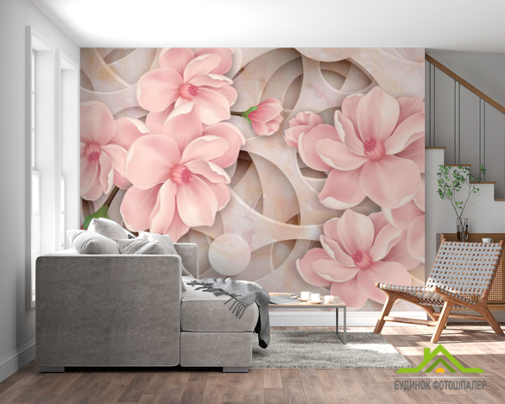 Фотообои 3д цветы розовые