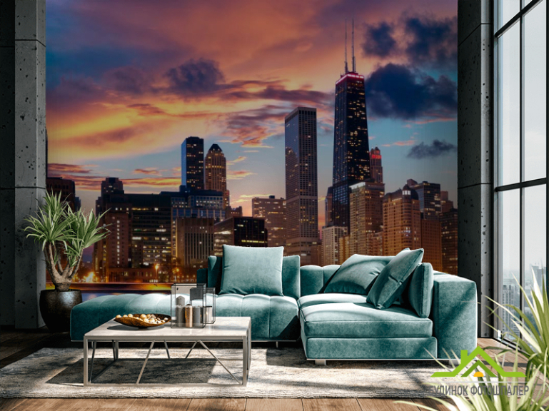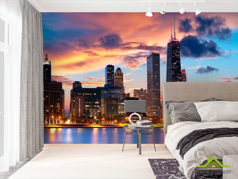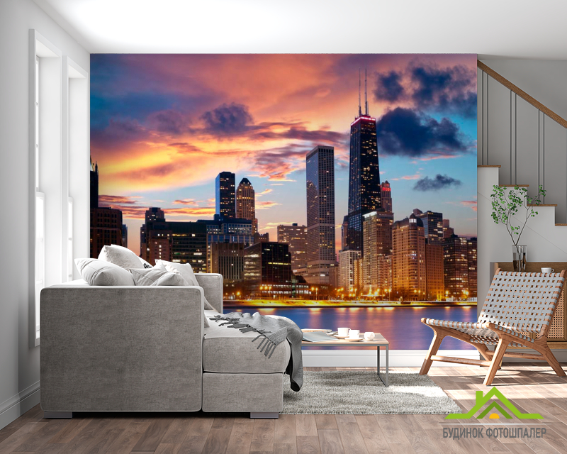 Фотообои Закат, город, вода в Чикаго