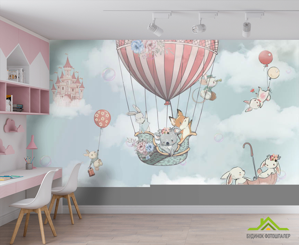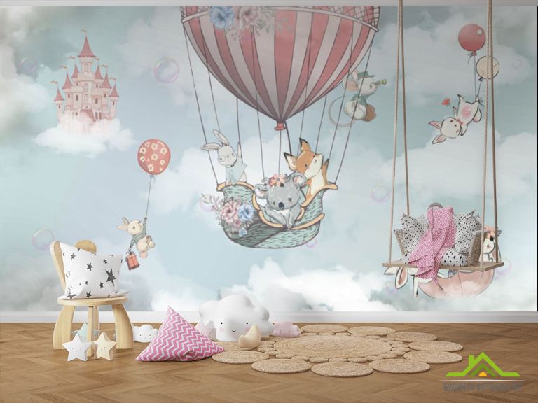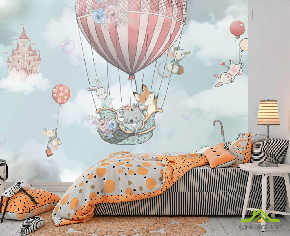 Фотообои Воздушный шар с жывотными для мальчика Фотообои Воздушный шар с жывотными для мальчика