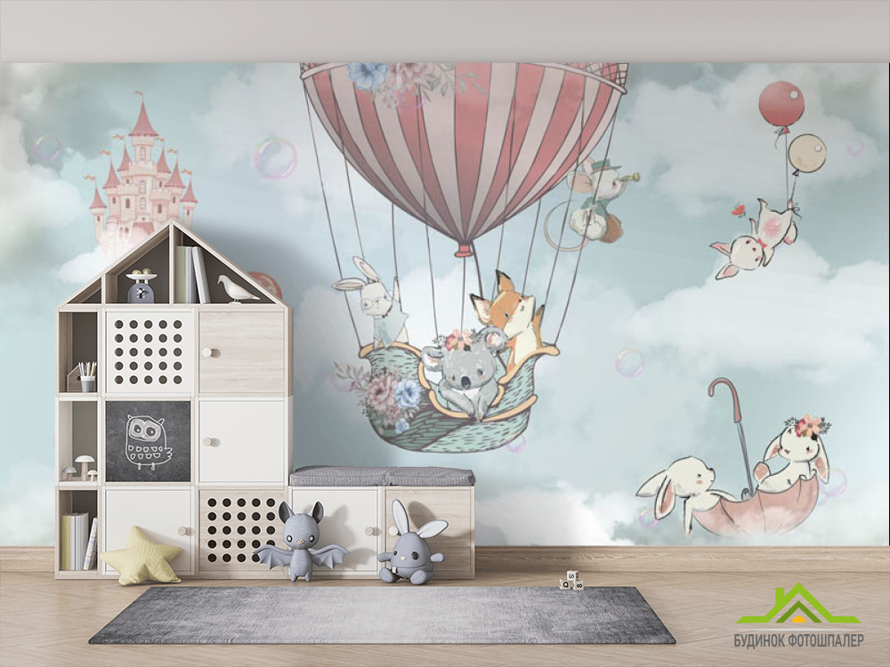 Фотообои Воздушный шар с жывотными для мальчика