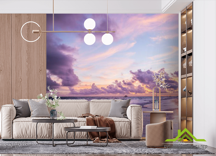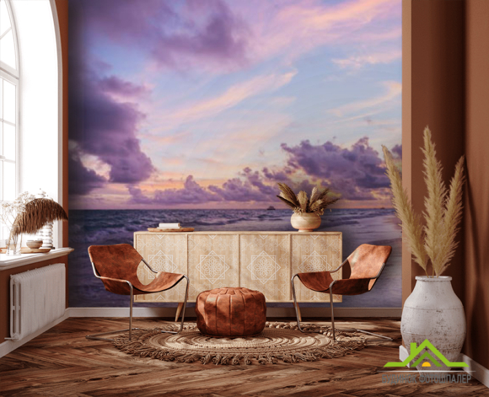 Фотообои Фиолетовый закат у моря Фотообои Фиолетовый закат у моря