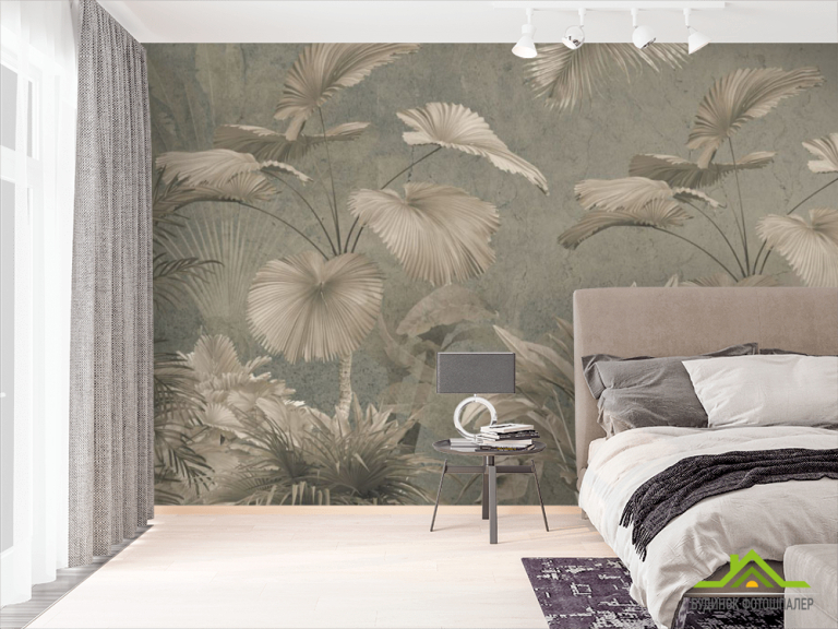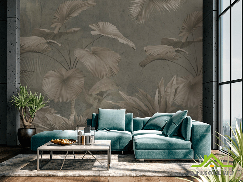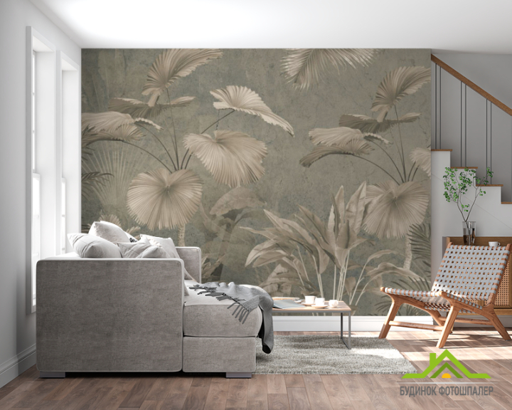 Фотообои Тропические листья в коричневом цвете Фотообои Тропические листья в коричневом цвете