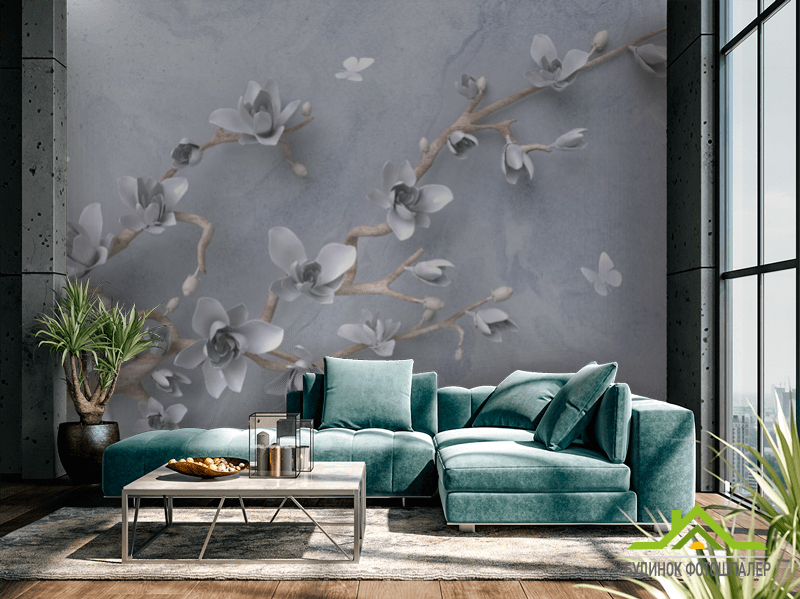Фотообои Ветвь с цветами 3д Фотообои Ветвь с цветами 3д