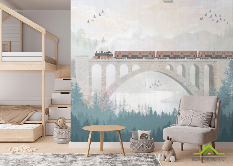Фотообои Поезд на мосту в детскую Фотообои Поезд на мосту в детскую