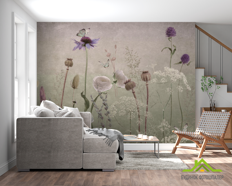 Фотообои Полевые дизайнерские цветы розовые Фотообои Полевые дизайнерские цветы розовые
