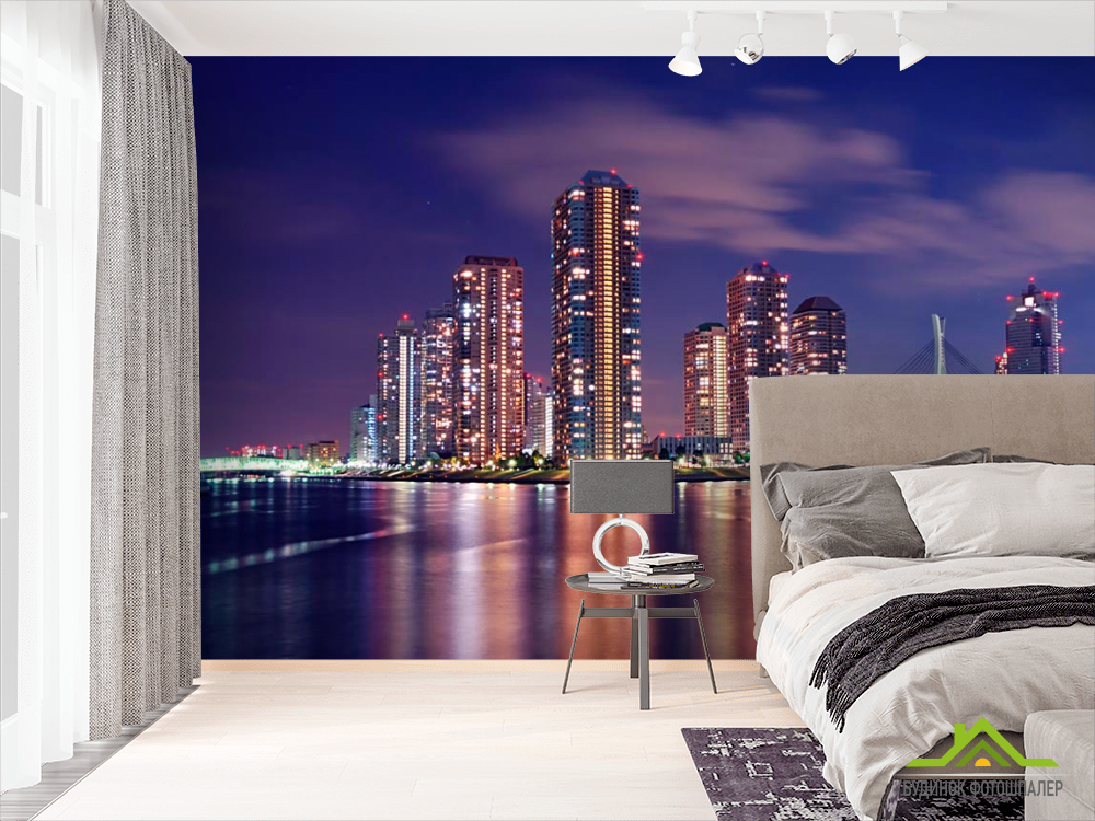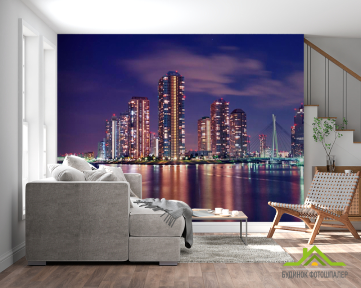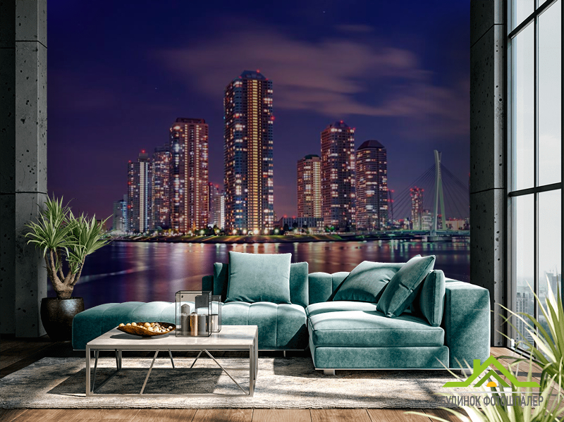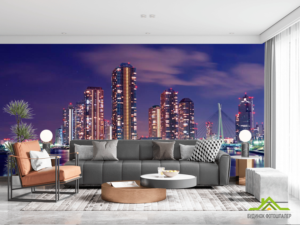 Фотообои Мост,ночь, высотки Фотообои Мост,ночь, высотки