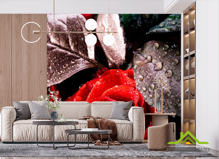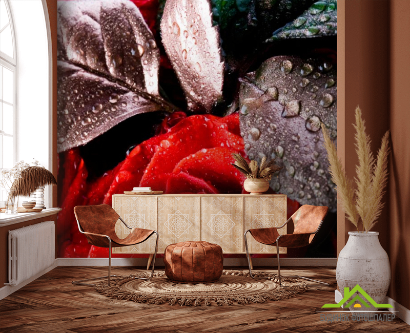 Фотообои Алая распустившаяся роза Фотообои Алая распустившаяся роза