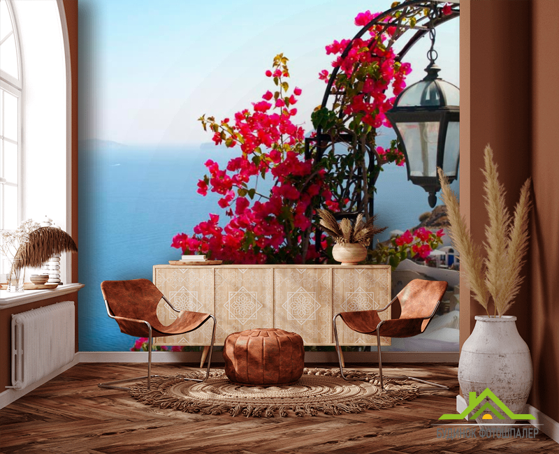 Фотообои Цветы на фонаре,  Греция Фотообои Цветы на фонаре,  Греция