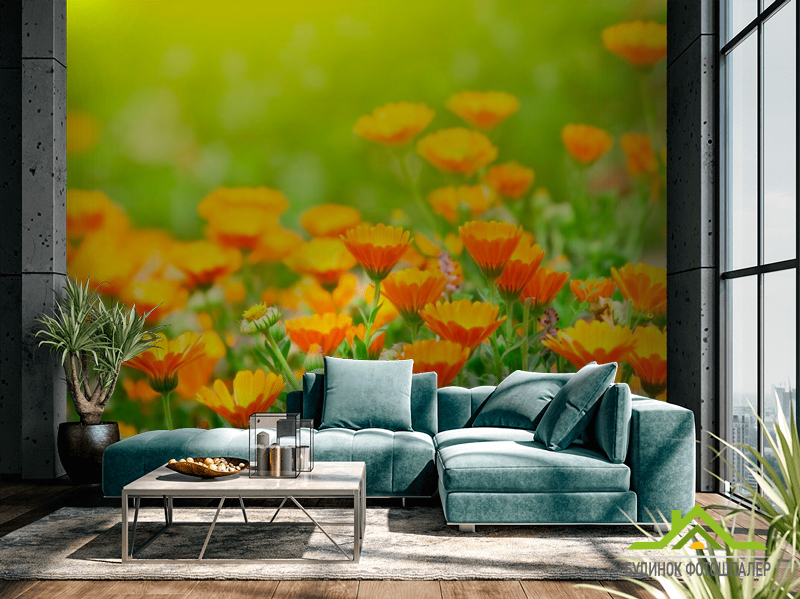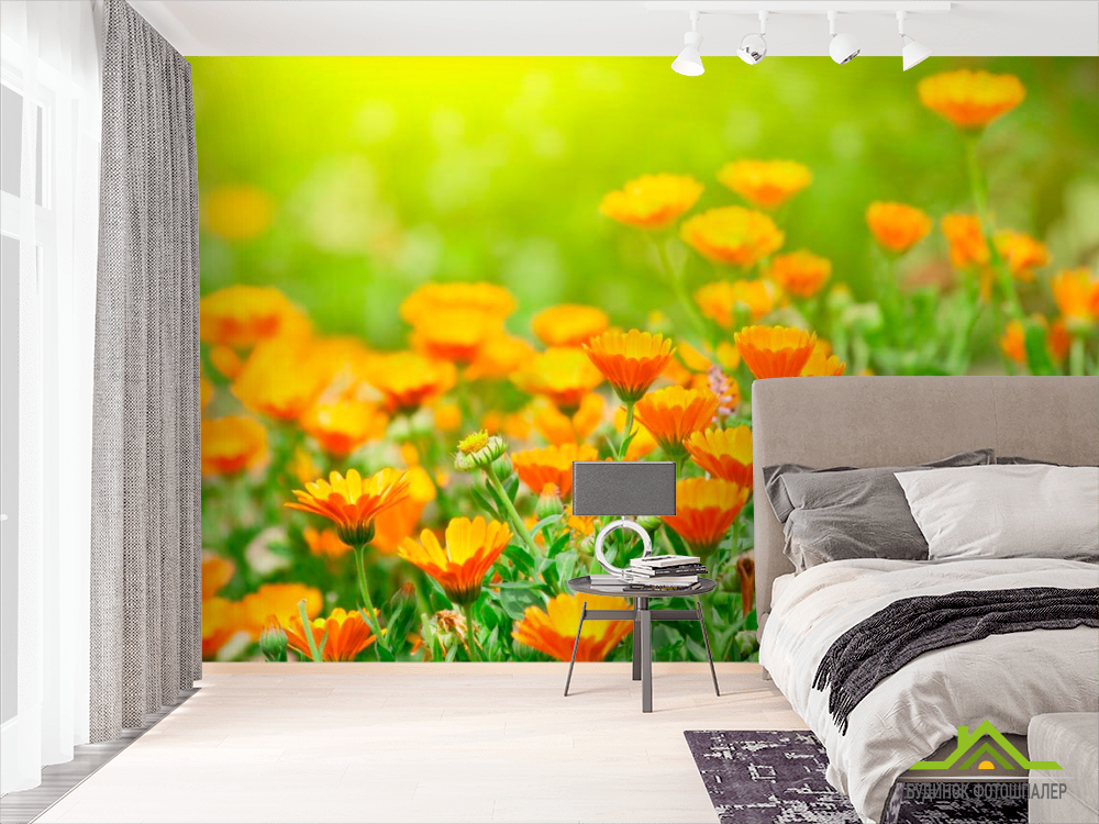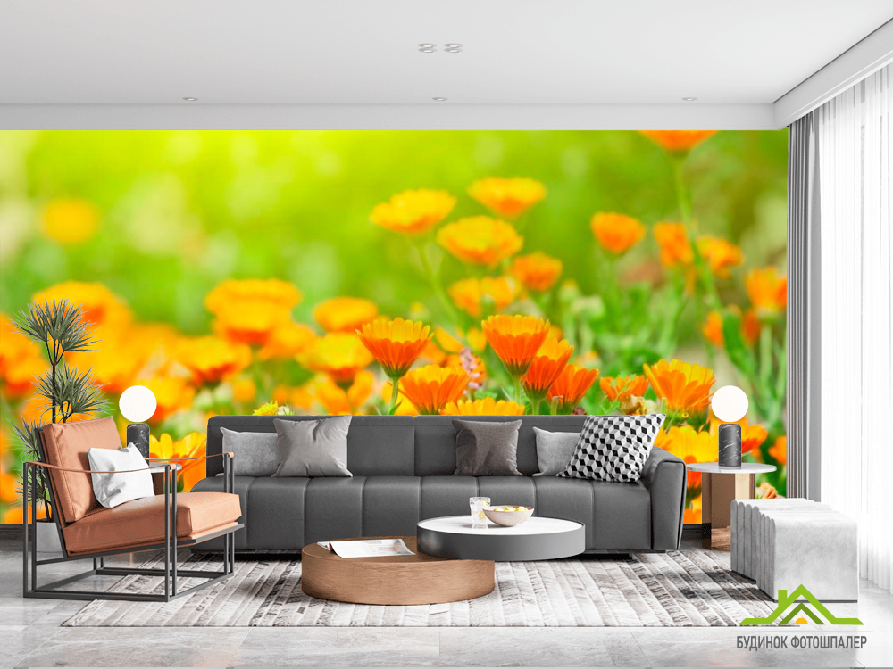 Фотообои Оранжевые чернобривцы Фотообои Оранжевые чернобривцы