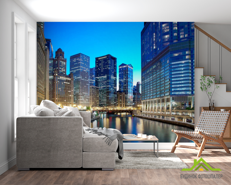 Фотообои Дома, вода, вечер