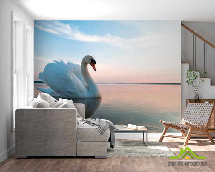 Фотообои Лебедь на пруду Фотообои Лебедь на пруду