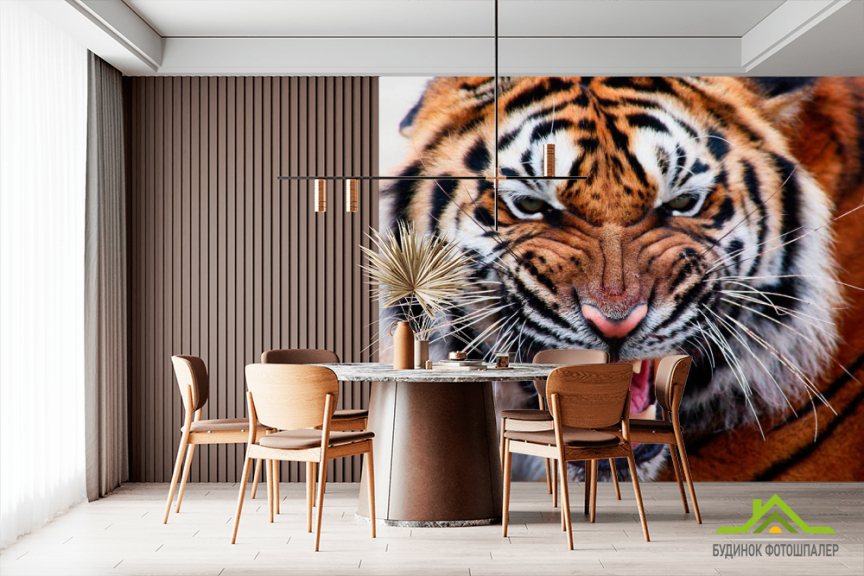 Фотообои Грозный оскал тигра Фотообои Грозный оскал тигра