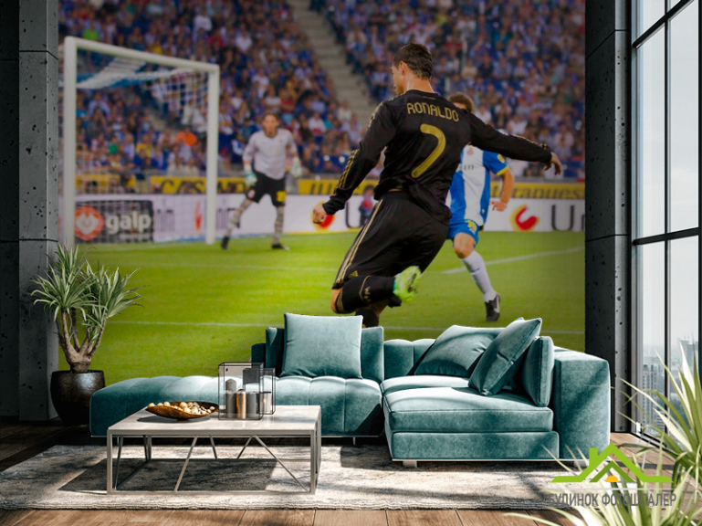 Фотообои Роналдо атакует ворота Фотообои Роналдо атакует ворота