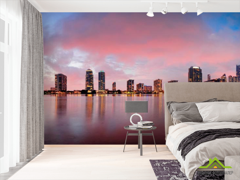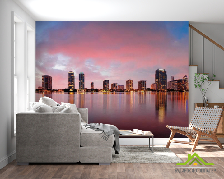 Фотообои Вода, вдали город Фотообои Вода, вдали город