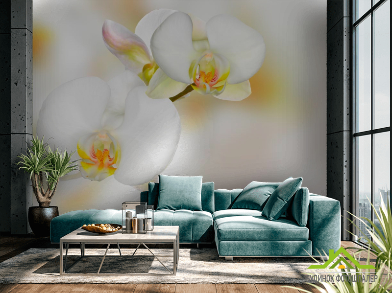 Фотообои Орхидеи белые с желтым Фотообои Орхидеи белые с желтым