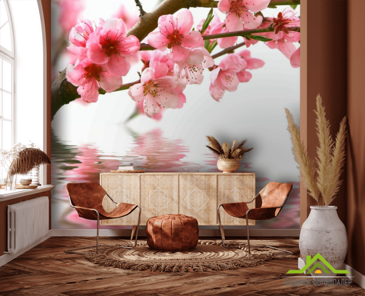 Фотообои Розовые цветки и вода Фотообои Розовые цветки и вода