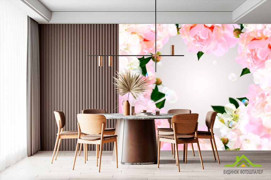 Фотообои Рамка из бежевых пионов