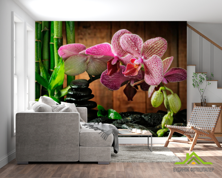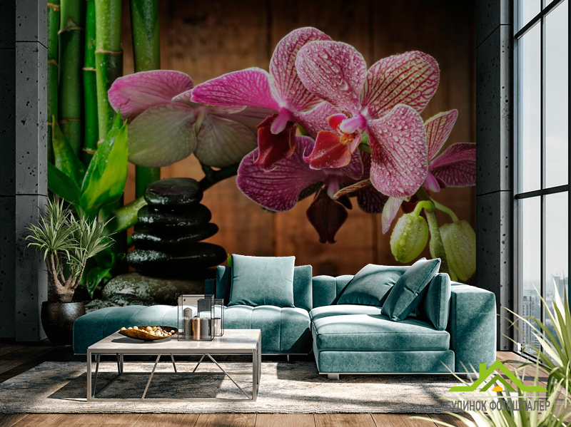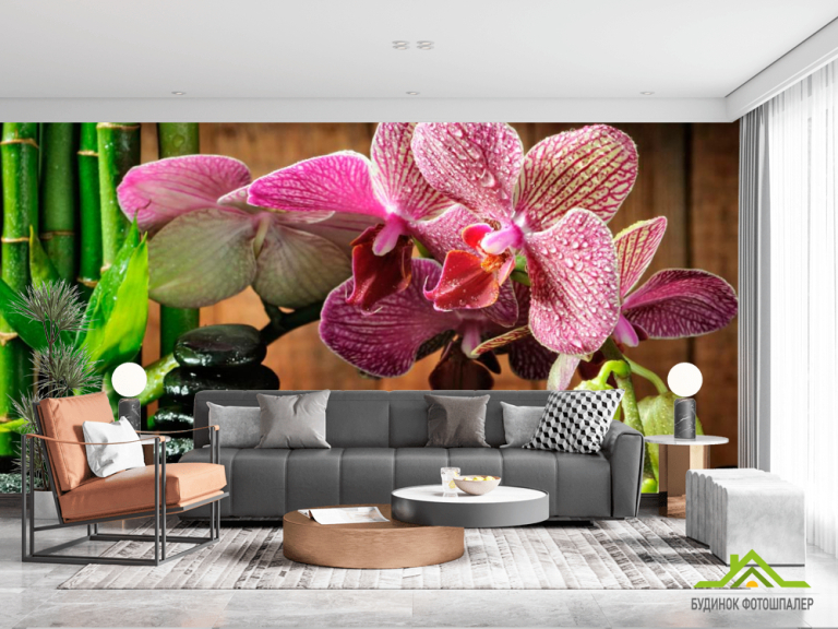 Фотообои Малиновые полосчатые орхидеи Фотообои Малиновые полосчатые орхидеи