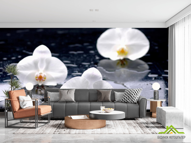 Фотообои Орхидеи на черных камнях Фотообои Орхидеи на черных камнях