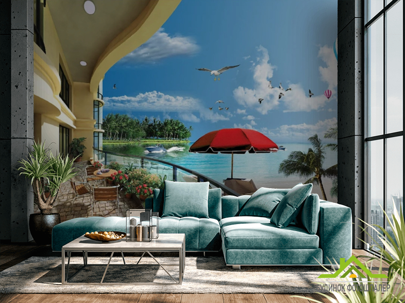 Фотообои Вид из балкона на море с терассой Фотообои Вид из балкона на море с терассой