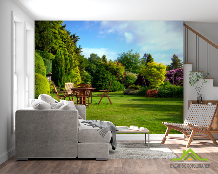 Фотошпалери Столик, стільці, природа Фотошпалери Столик, стільці, природа
