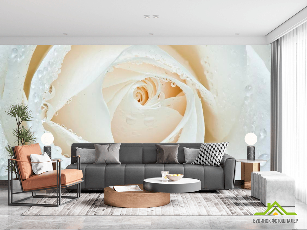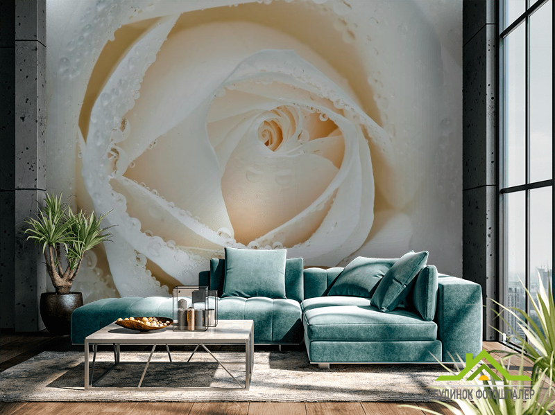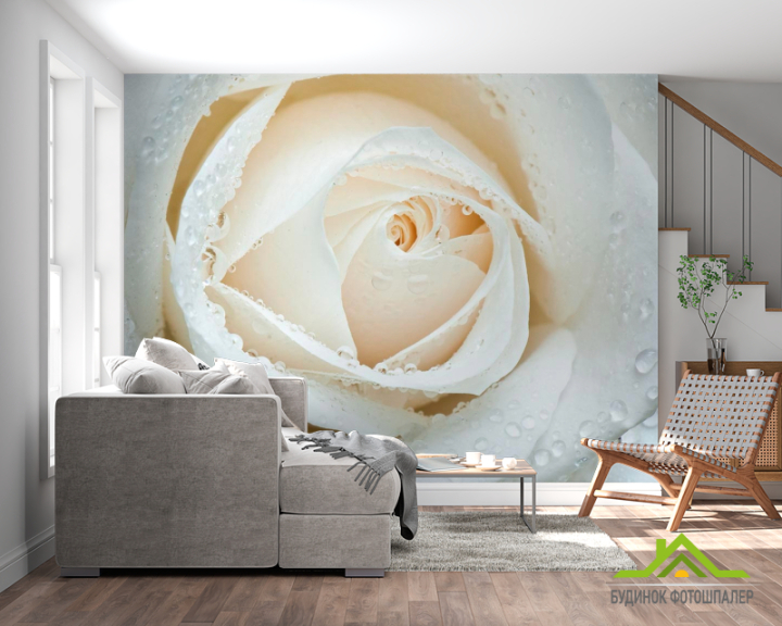 Фотошпалери Біла троянда макро-зйомка Фотошпалери Біла троянда макро-зйомка