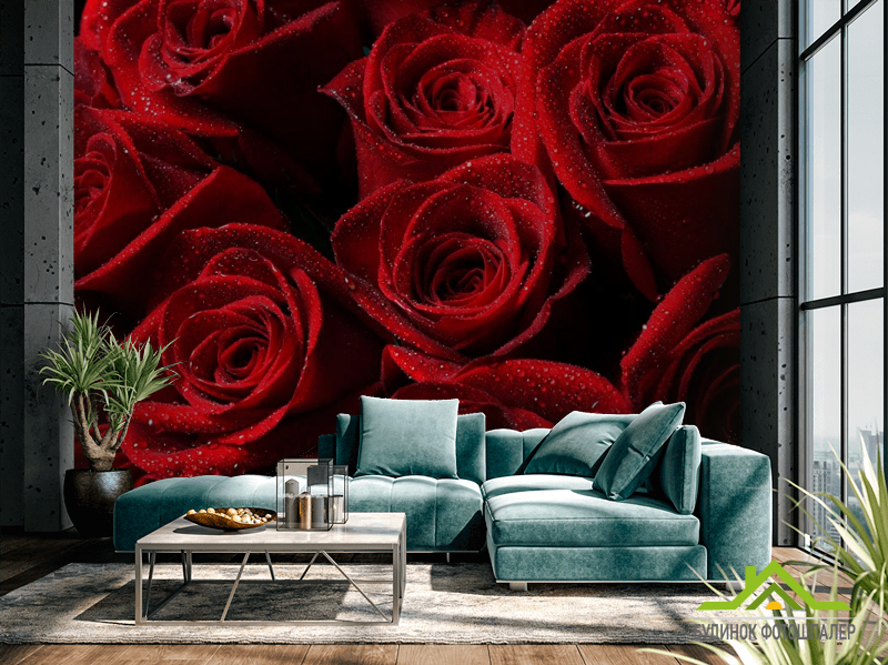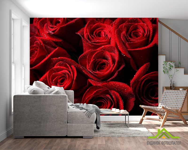 Фотошпалери Букет троянд червоного кольору Фотошпалери Букет троянд червоного кольору