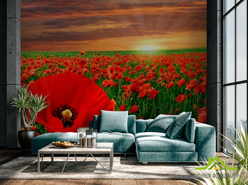Фотошпалери Схід на маковому полі