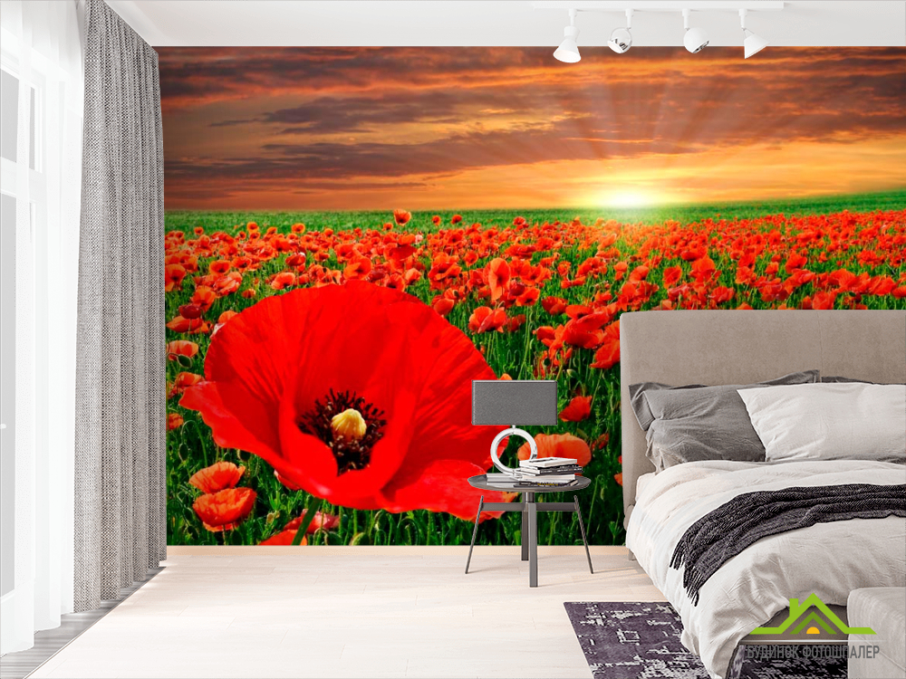 Фотошпалери Схід на маковому полі Фотошпалери Схід на маковому полі