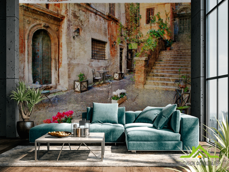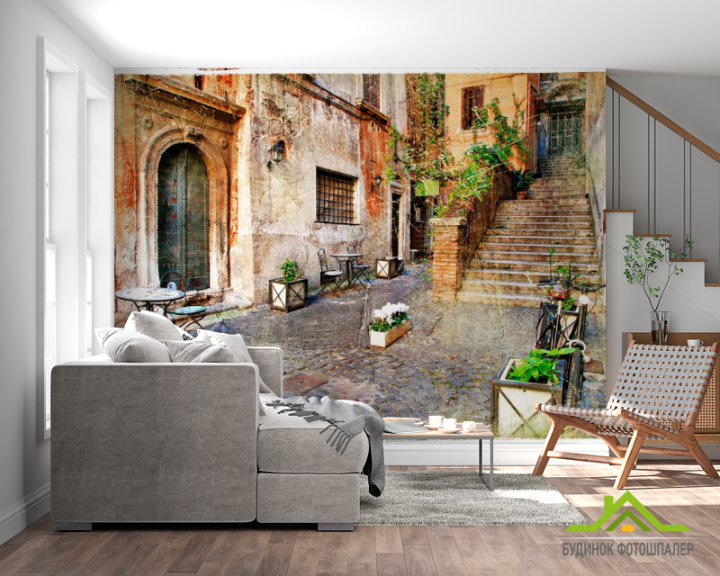 Фотошпалери Старий дворик з сходинками Фотошпалери Старий дворик з сходинками
