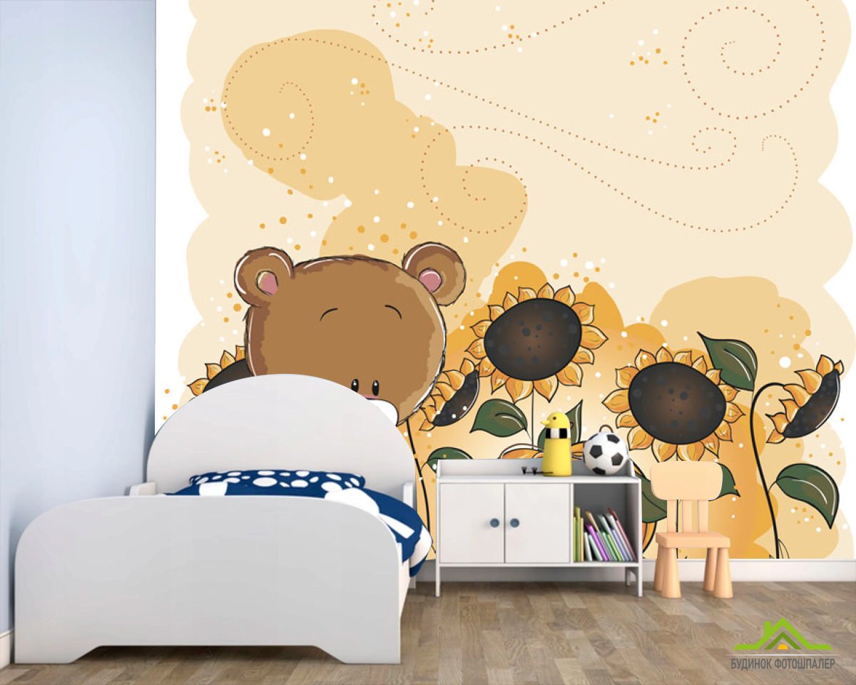 Фотошпалери Ведмедик і соняшник Фотошпалери Ведмедик і соняшник